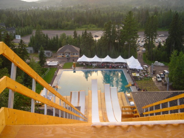 そして靭帯手術から約6ヶ月が経過しました。今はすでにカナダのケベックにて猛特訓中です。 0.2馬力ぐらいで爆走中です!そして、膝の細胞分裂は現在も気持ちが悪いくらいに進行中。澄香さん、一度、水野の膝の中を覗いてみませんか?きっと幸せな世界が待っています(絶対に中は万華鏡。。。覗いてみたい方は水野まで) 今回は、カナダのウォータージャンプPRのTV撮影に選抜されました(コーチのディビット&カナダ人の無理矢理な推薦です。昼飯食べてないのに…)撮影内容は、カナダのナショナルチームとのショージャンプです(一斉にウォータージャンプを何人かで飛びます)そして、水野剣。ここでまた悪巧み。。。っということで挑戦する技は2回転4回ひねり(※フル・トリプルフル)です。フッフッフー( ̄ー+ ̄)やるからにはカナダ人より目立ってやるんだ!実はこんな技、今まで一度もトライした事はありません。そんなこんなで水野剣。見事に初トライで着地を決めました。カナダチームもビックリ。作戦完了。今日も良い日でした。